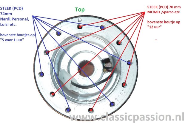Deze merken gebruiken een "steek" met zes boutjes die ook door vele andere sturen merken gebruikt wordt.